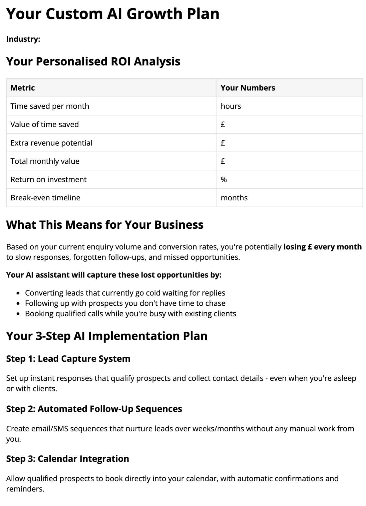 A Fully Personalised ROI Breakdown - see how much time & money you could save using AI